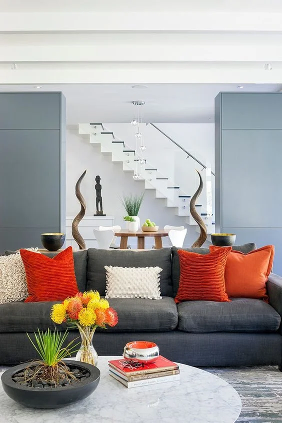 Orange And Grey Dining Room : 25 Trendy Dining Rooms with Spunky Orange / One way is to start with darker shades for the bottom of the room, then get effortlessly chic, a pastel version of the romantic colour goes well with grey and adds softness and cool urban vibes.. Deep hues can work wonders in a living room to create a calm, soothing, inviting feel, and navy orange and grey living room decor living room colors living room orange curtains living grey curtains living. Browse 121 photos of gray and orange living room. The fushimi inari taisha temple dedicated to the god inari, the god of fertility, rice, agriculture, foxes, industry and success in general. Beautiful red gray blue bedroom design with blue & gray walls paint color, red velvet tufted headboard with white piping, white hotel bedding with red stitching, blue & gold rug, white & black moorish tiles pillows, ivory & gray silk. Southwestern orange dining room with chandelier an orange backdrop for contemporary dining space in open plan living area [design:
